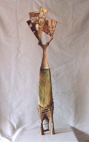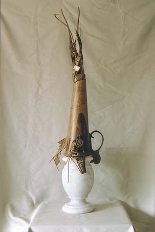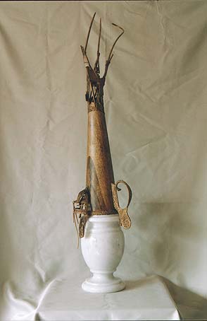 patinovaná mosaz, dřevo, mramor |