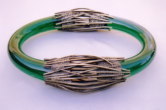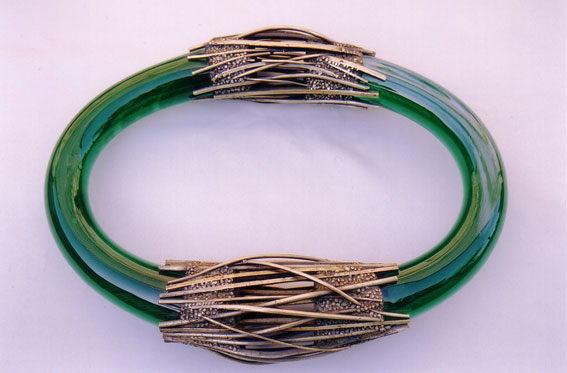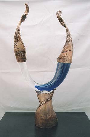 patinovaná mosaz, lité sklo ,